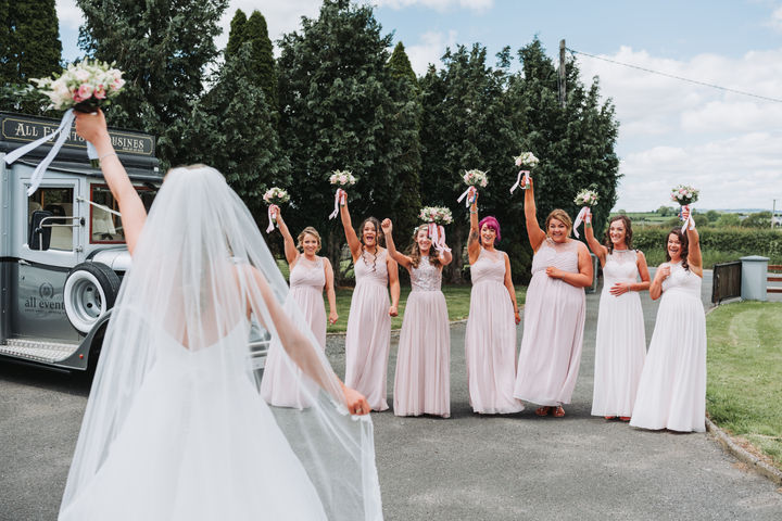 Afterward, the bride shared a touching first look with her bridesmaids, filled with excitement and joy.