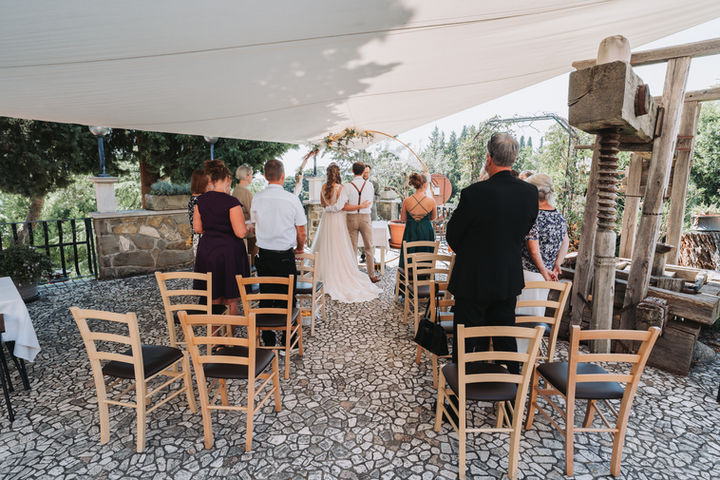 After the emotional vows, a relaxed photo shooting followed on the terraces and in the villa's gardens.